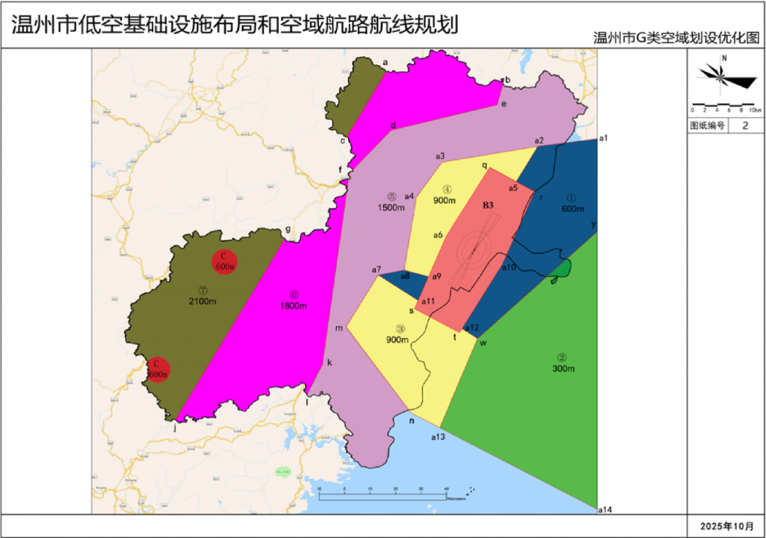 在空域规划方面,温州地区G类空域被划设为7个区域,高度范围从海拔300米到2100米不等,为各类低空飞行提供了合法、安全的空域资源。