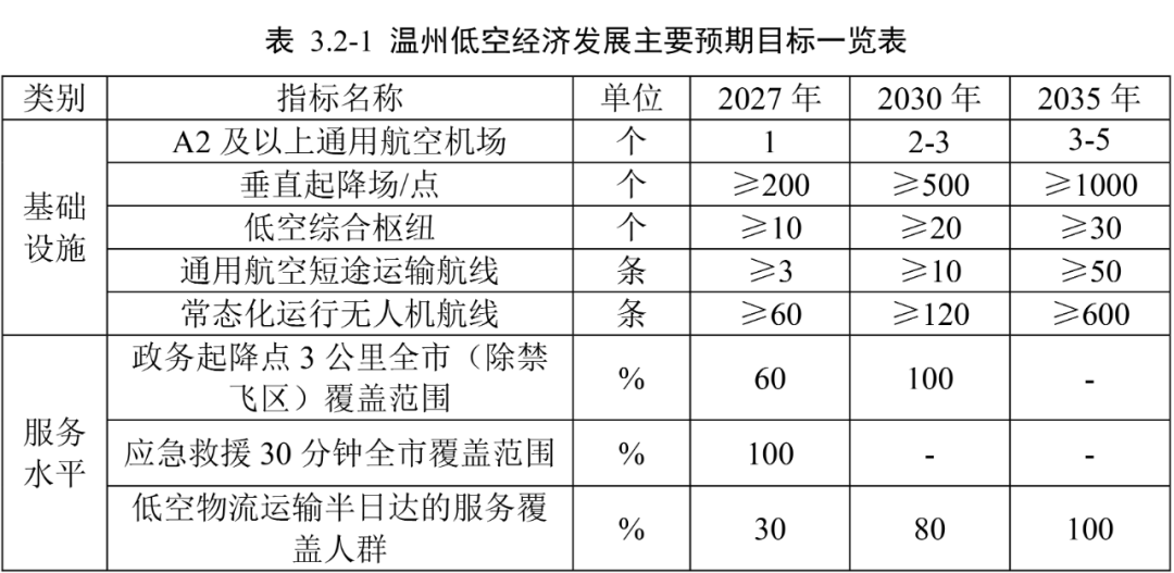 到2035年建成3-5个通用航空机场、1000个以上垂直起降点、30个以上低空综合枢纽,实现“一县一起降枢纽、一镇一起降场”全覆盖。