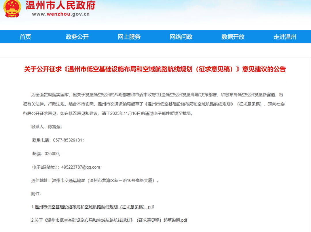 10月17日,《温州市低空基础设施布局和空域航路航线规划(征求意见稿)》发布,标志着温州正借助低空经济的力量,开启通向“全省第三极”的新航道。