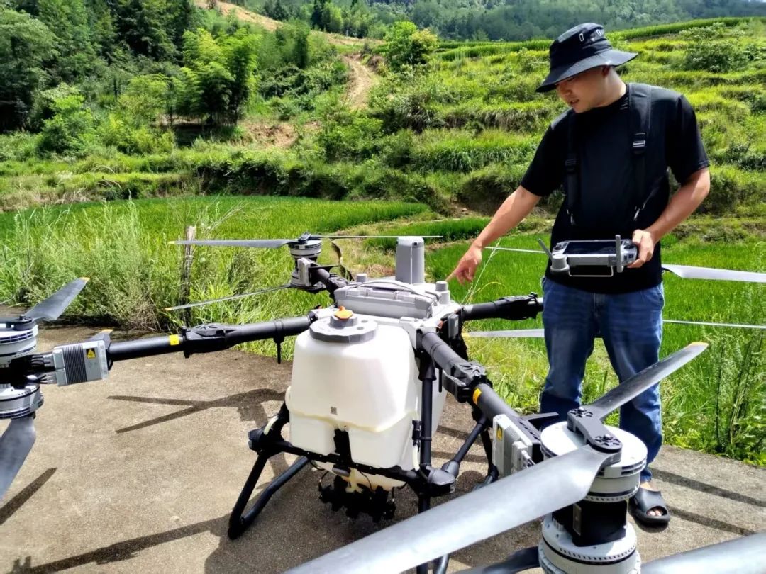 “无人机平均每分钟可施药1至2亩,工作效率相当于同等时间内10个人的工作量,能极大释放劳动力。而且它采用低空喷洒方式,旋翼产生的向下气流有助于增强雾流对作物的穿透性,让农药喷洒更均匀,防治效果更突出。亩用药水量仅0.1至0.3公斤,是常规用量的一半,在提升水稻统防统治专业化水平的同时,也更环保、节能。另外,无人机不仅能用于农业,在搬运沙石、承载重物等日常生活场景中也能发挥作用。” 万安镇好坑村的范志伟介绍道。他表示,万安作为农业乡镇,烟稻轮作是当地最重要的种植模式之一,希望无人机能在全镇范围内推广使用,让农户省时省力的同时也更加直观的感受到现代农业科技魅力。